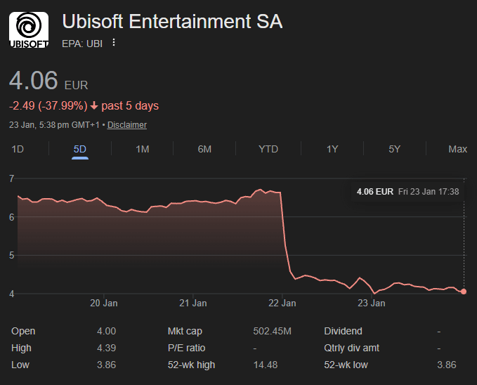 📉Ubisoft crashes 37%!